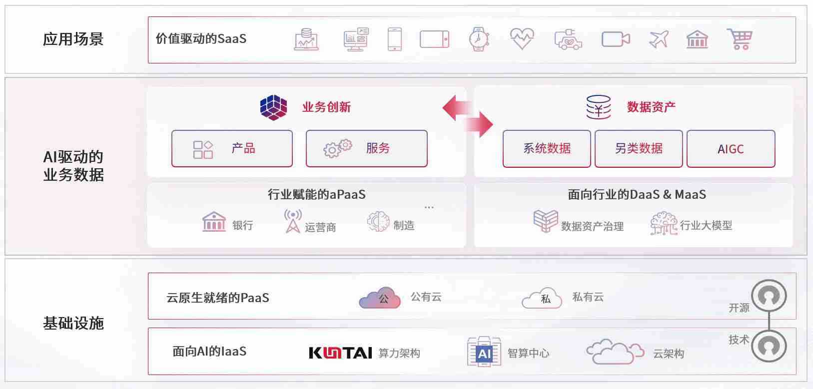 数字时代,,,,围绕企业数字化转型的关键要素,,,三牛娱乐数码开创性的提出数云融合战略和技术体系框架,,,,着力在云原生、、数字原生、、、、AI原生和信创产业上架构产品和服务能力,,为处在不同数字化转型阶段的快消零售、、、、汽车、、、、金融、、、医疗、、、、政企、、、、教育、、、、运营商等行业客户提供泛在的敏捷IT能力和融合的数据驱动能力,,,构建跨界融合创新的数字业务场景和新业务模式,,,助力企业级客户建立面向未来的核心能力和竞争优势,,全面推动社会的数字化、、、、智能化转型升级。。。